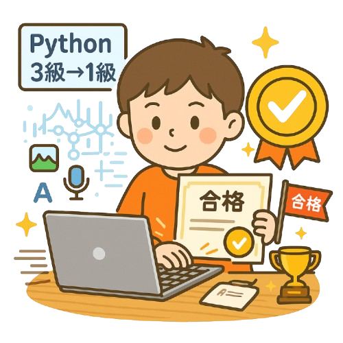 本コースでは、Pythonに関連する資格試験の対策を行います。これらの資格は、高校や大学の推薦、さらには就職活動において非常に有利に働きます。Pythonのスキルを証明することで、お子様の将来に向けた大きな一歩となるでしょう。